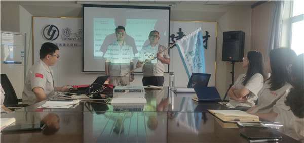 7月13日早上9点,营销部在这里隆重举行了分队授旗仪式,有着霸气队名和响亮口号的四支优秀团队由此正式组建。迎风招展的队旗,慷慨激昂的队员宣誓,军令状上鲜明的文字与现场热烈的气氛,将整个仪式推向高潮,总经理对营销部工作提出了指导建议,号召各团队积极行动起来,以此为契机,井然有序、目标明确地开展竞赛活动,以饱满的热情、昂扬的斗志投身于活动中,抢抓机遇,再立新功!总经理的讲话极大鼓舞了营销四队的士气,为本次仪式画上了一个圆满的句号!